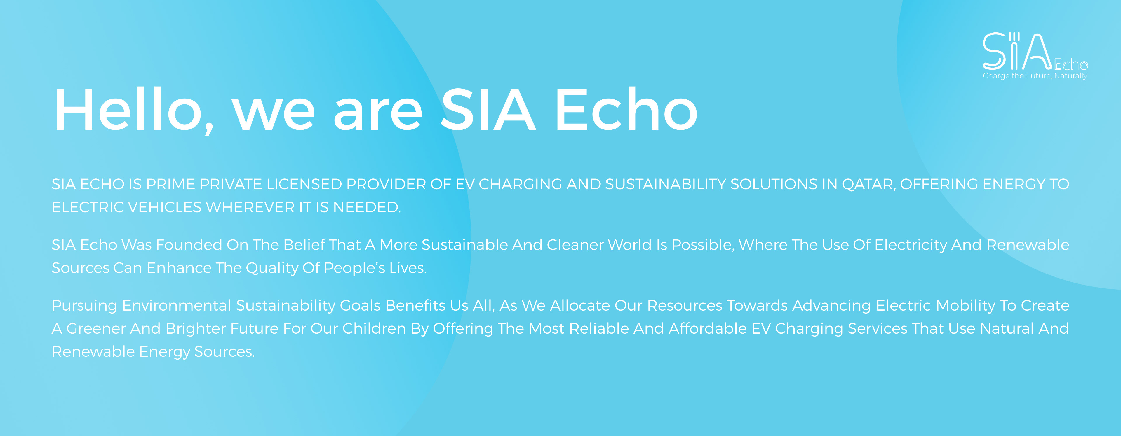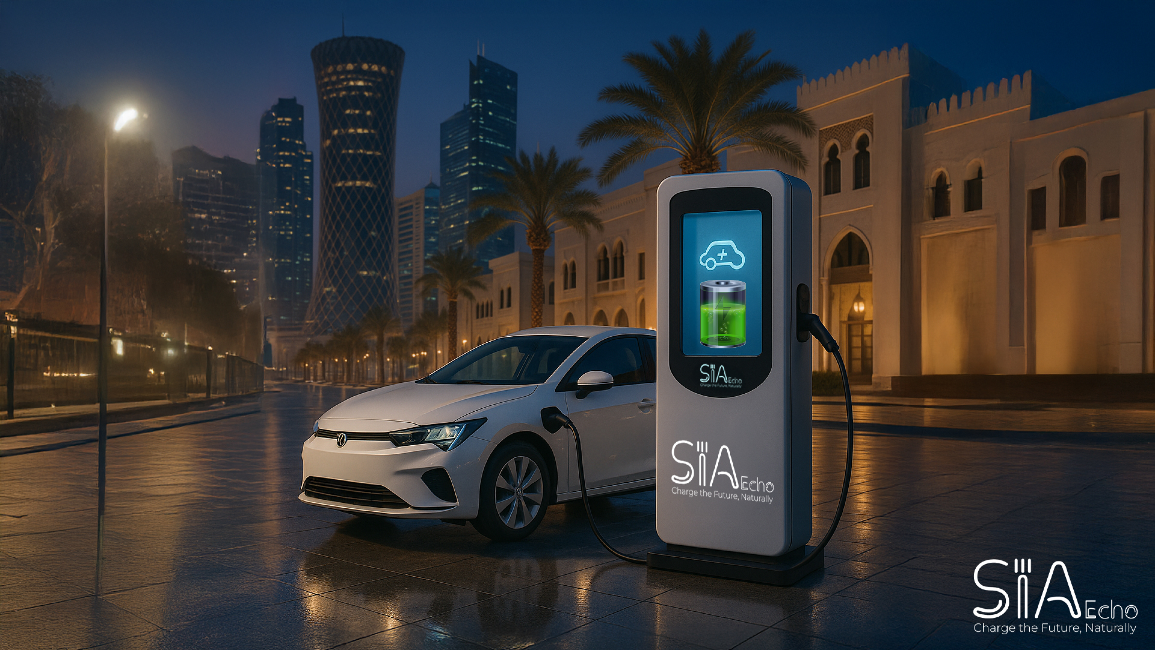 SIA Ech is prime private licensed provider of ev charging and sustainability solutions in qatar, offering energy to electric vehicles wherever it is needed. SIA Echo was founded on the belief that a more sustainable and cleaner world is possible, where the use of electricity and renewable sources can enhance the quality of people’s lives.
